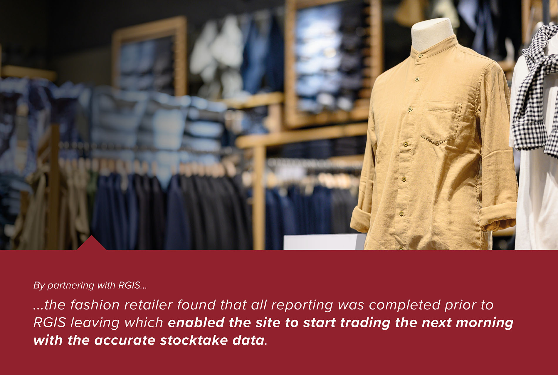 - All reporting was completed prior to RGIS leaving each site which enabled the fashion retailer’s site to start trading the next morning with the accurate inventory data
